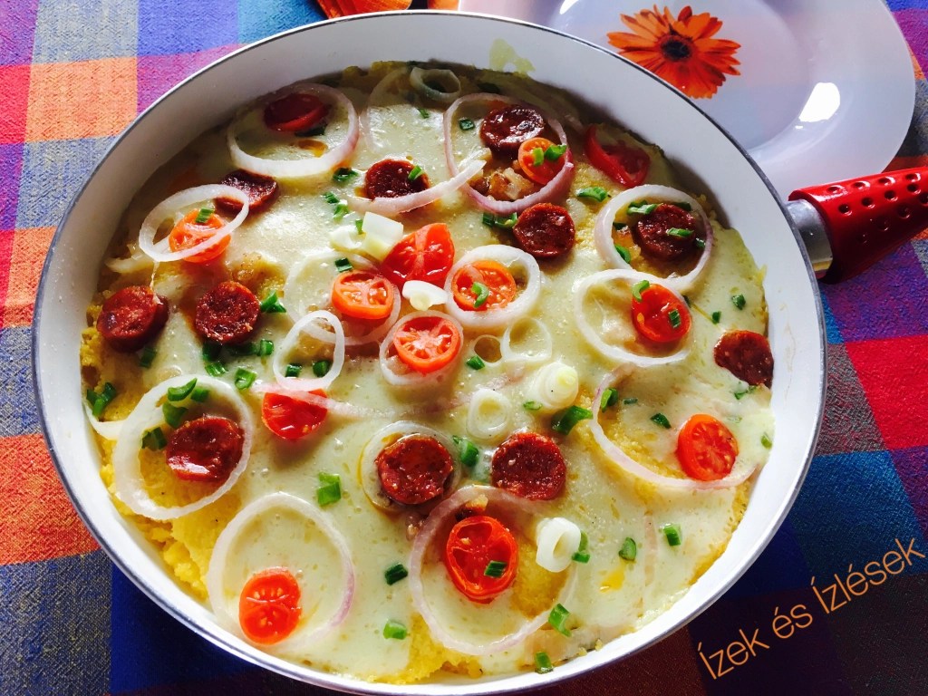 Èppen ezért kicsit felturbóztam, füstölt kolbásszal, hagymával, paradicsommal, és persze, finom erdélyi túróval, melyet sajtból gyùrnak el.