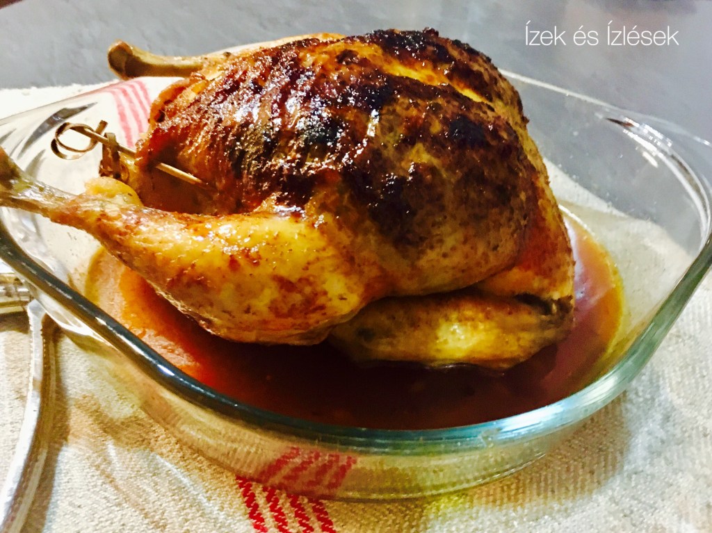 Egy ropogósra sült csirke egy különleges töltelékkel akár egy ünnepi ebéd is lehet. A töltelék mivel kissé száraz ezért lilakáposztát tudok ajánlani hozzá.