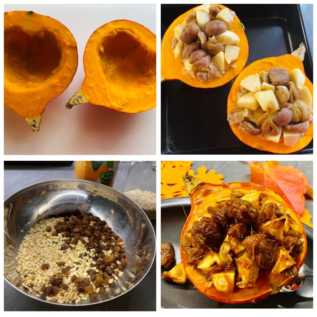 Zabkásával van megtöltve, almával, gesztenyével, ízesítve lélekmelegítö füszerekkel megfüszerezve, mézzel vagy karamellel megcsorgatva, egy nagyon finom öszi csemege.