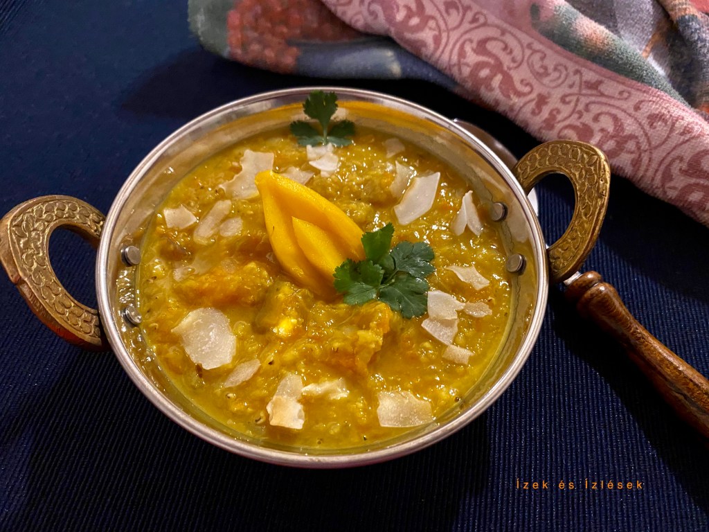 Elsejére akartam elkészíteni, aztán mégis egy másik receptet próbáltam ki, a Nyugat-afrikai mogyorós változatot. Ez is nagyon finom, mangóval, sütötökkel, megéri elkészíteni.