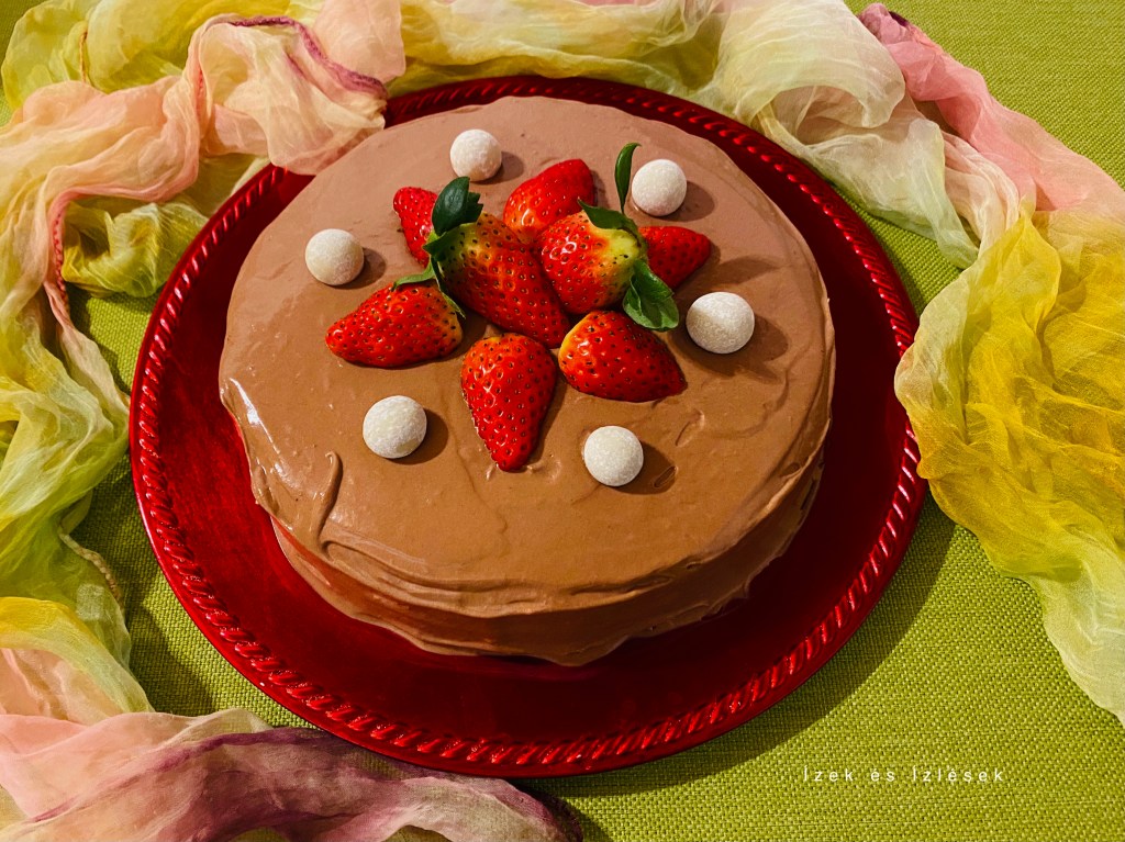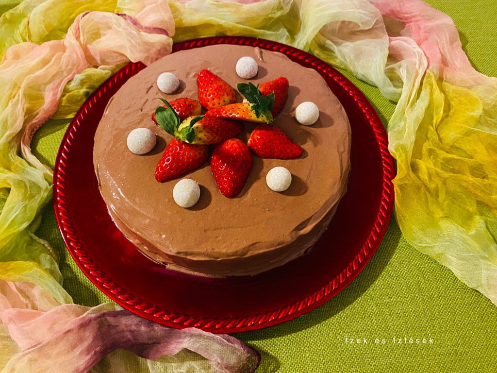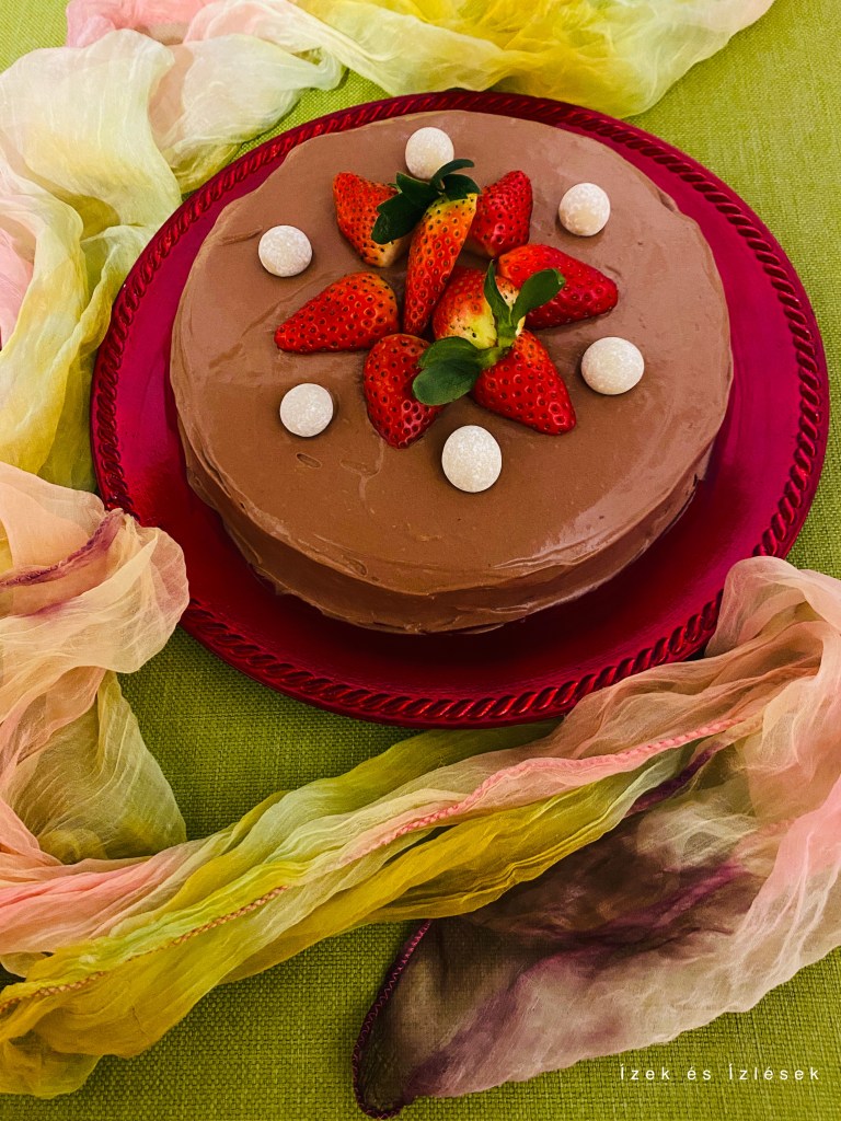 Èn nagyon siettem vele mivel késö délután fogtam a sütéshez és este szülinapra kellett vigyem. A krémje még mindig folyósnak bizonyúlt, ezért gyorsan habbá vertem egy doboz növényi tejszínt, és a csokikrémet hozzáöntöttem, így egy óra hütés után már jó volt az állaga. Természetesen másnap még jobb, ha hagyjuk még több idöt dermedni.