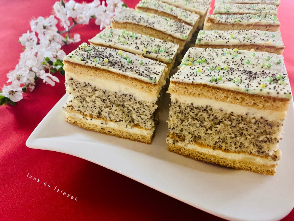 Citrom krémmel töltöttem meg a lapokat, és a puha mákos piskóta jól mutat a lapok között.