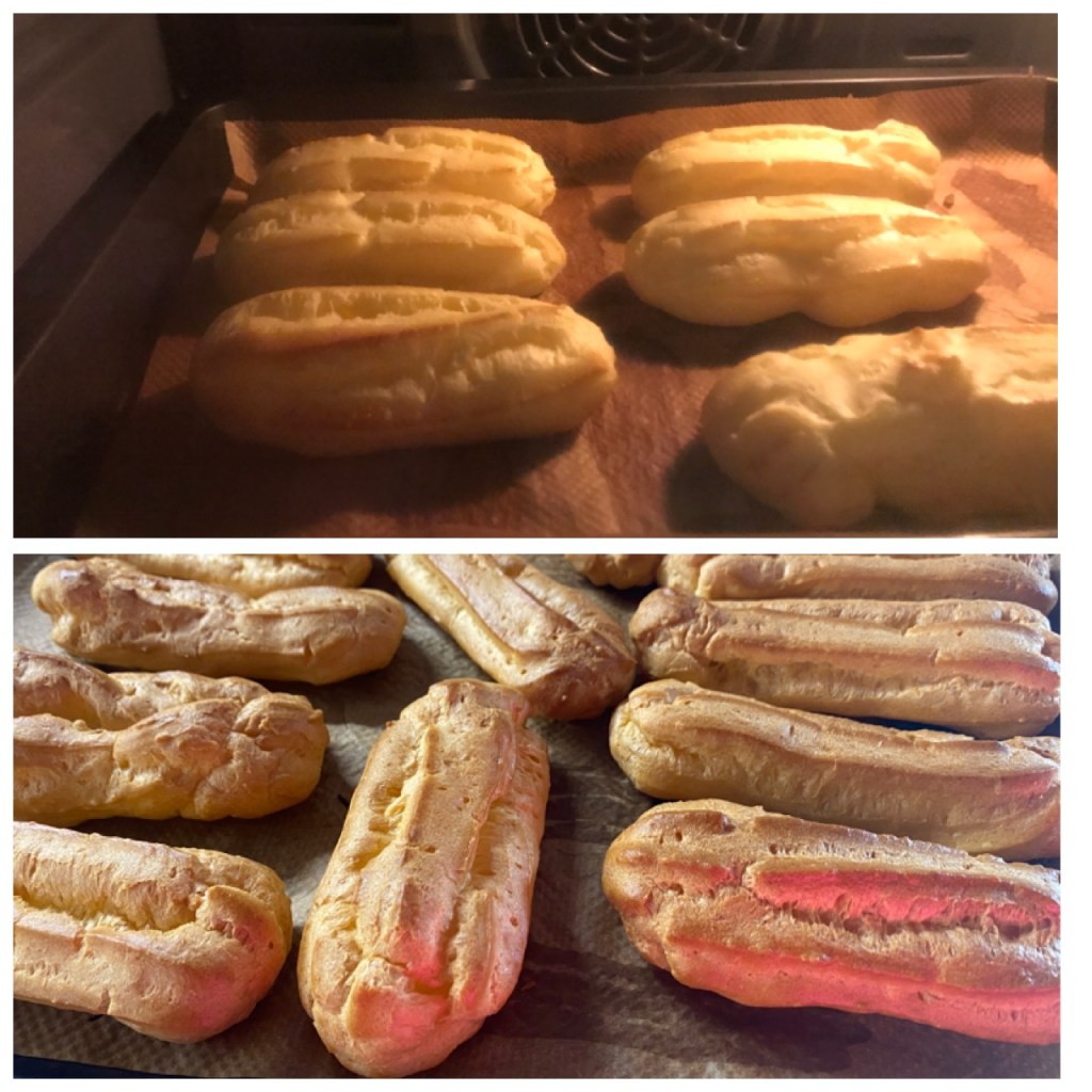 A sütöt elömelegítjük 220 C°-ra, a sütöpapírra vizet spriccelünk, és légkeveréses gözös sütöbe tesszük. Ha szépen már megemelkedtek, akkor visszavesszük a sütöt 180-190 C°-ra tovább sütjük, még kb. 15 percet. Fontos, hogy ne nyítsuk ki a sütö ajtaját.
