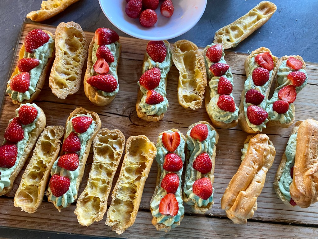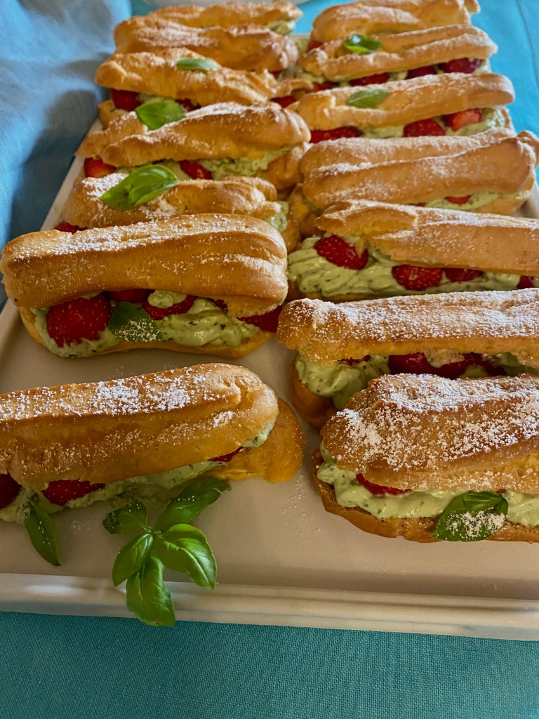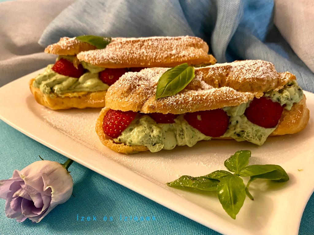 Az eper és a bazsalikom egy jó párost alkot. A bazsalikom mousse-t próbáltam már levesbetétként egy eperkrémlevesbe, isteni finom volt. Most egy ekler (ecclair) fánkba töltöttem, most sem csalódtam.