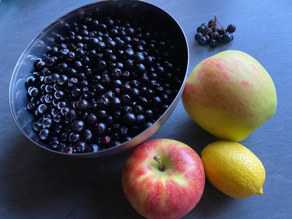 A megtisztított, többször átmosott berkenyét 300 ml. vizzel föni tesszük. A fövéstöl számítva 10 perc után hozzáadjuk a meghámozott, cikkekre vágott almát. Az almával is fözzük 10 percig, majd botmixerrel pépesítjük.