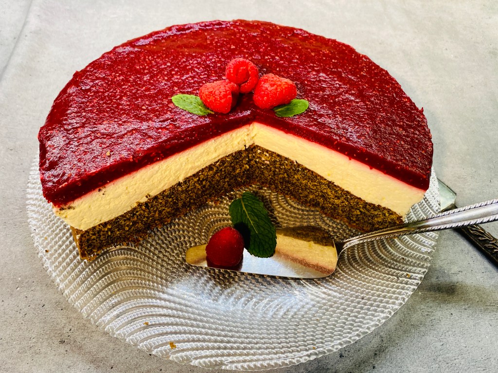 Hagyjuk kicsit hülni, és amikor kezd zselésedni, a turókrém tetejére öntjük.