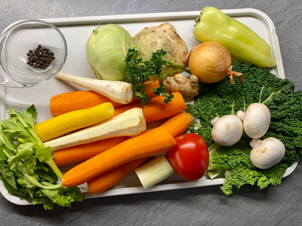 A zöldséget sosem szerettem kisporolni a húslevesböl, igyekeztem most is minden hozzávalót belerakni, az aprólék és a sáfrány kivételével.