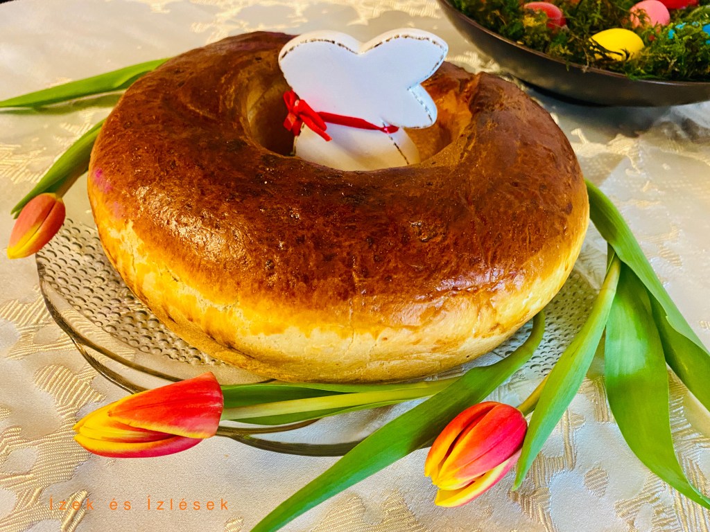 Lekenjük a tetejét egy felvert tojással, hagyjuk 30 percig kelni. A sütöt elömelegítjük 180 C°-ra , és mielött a sütöbe tesszük ismét lekenjük tojással, kb.40 percig sütjük,, meddig a teteje szép pirosra sül.