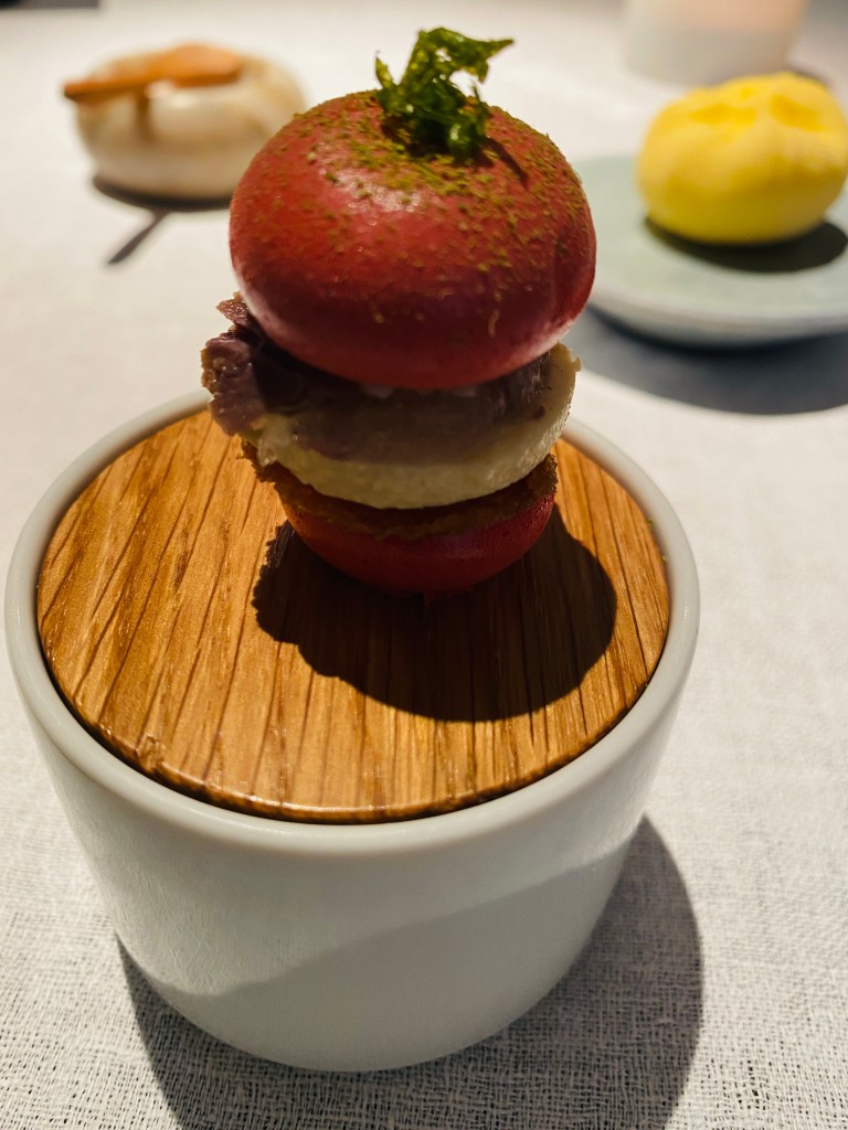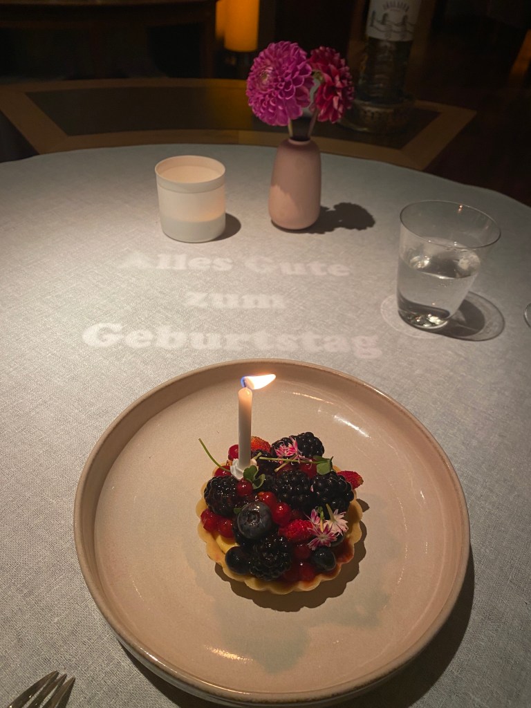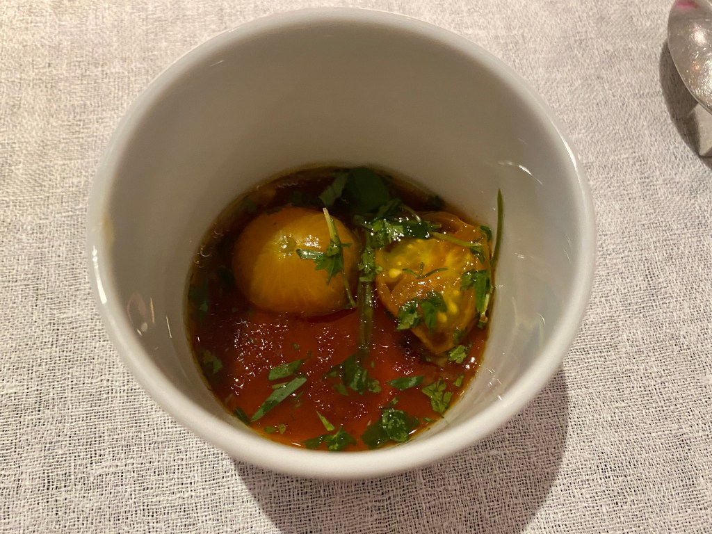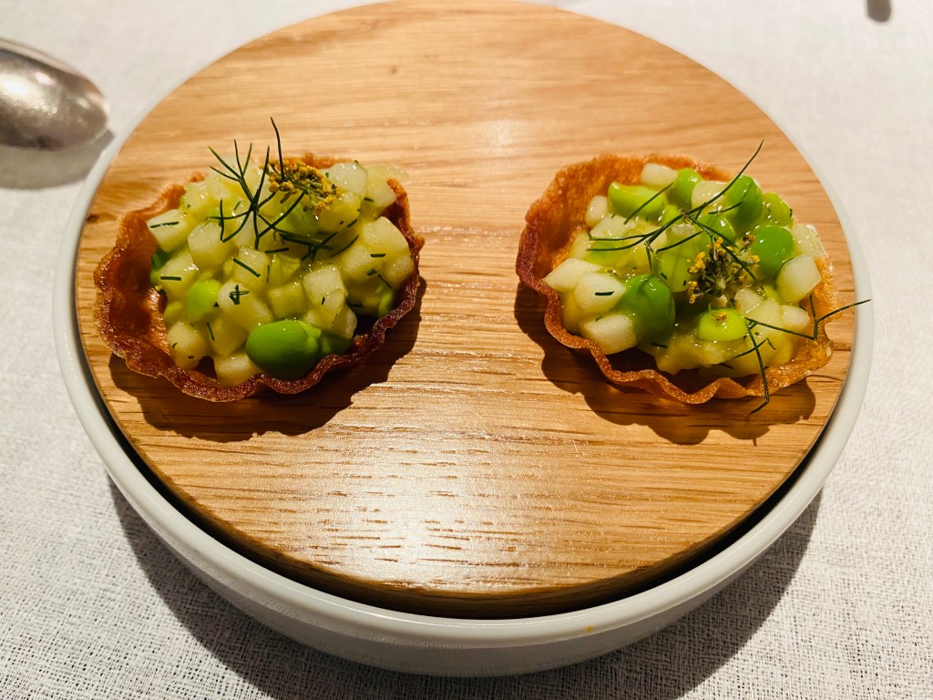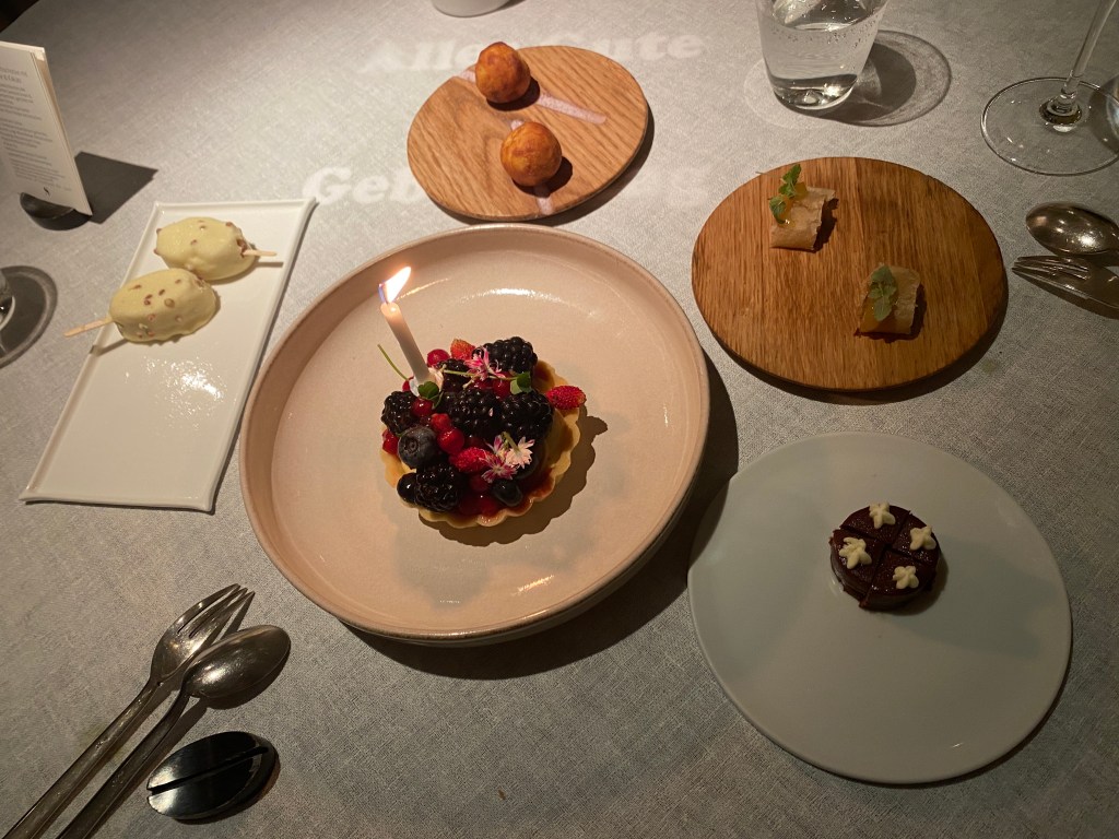 Hétfogásos úgynevezett degusztációs menüt választottunk. Ezenkívül volt három féle “amuse bouche”, vagyis a konyha üdvözlete. Zárásul pedig, négyféle “petit fours”, apró kis desszertekkel kedveskedtek, na meg nekem egy szülinapi tortával.