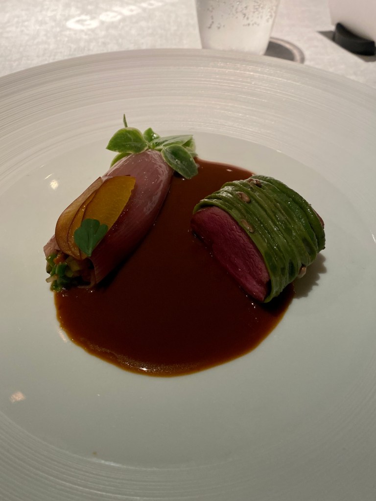 Mindegyik fogásban külömbözö textúrák voltak fellelhetöek: síma, darabos, roppanós, homogén, selymes, kiváló ízpárosításokkal, füszer eggyütthatásokkal. A fehérkesztyüs, kifogástalan megjelenésü felszolgálókat udvariasság, figyelmesség, tapintat jellemzte. Minden fogás elött egy kisérökártyát tettek az asztalra, melyen minden fontos infó megtalálható az ételekről, és a végén ez hazavihetö. Minden fogás elött, keményített, textil szalvétát tettek elénk, a poharak csillogtak, fénylettek-ragyogtak az ezüst evöeszközök.