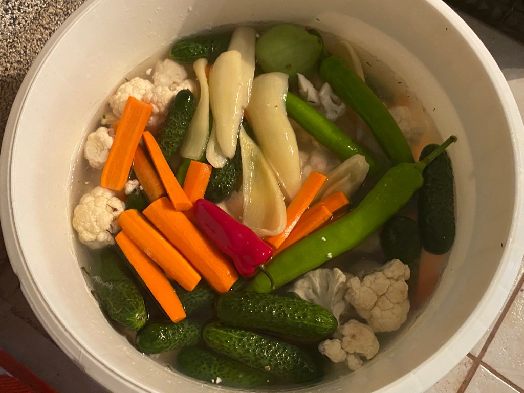 A kihült sós oldatot ráöntjük a zöldségekre, légmentesen lezárjuk az edényt. Fontos, hogy a sóoldat jól ellepje a zöldségeket!
