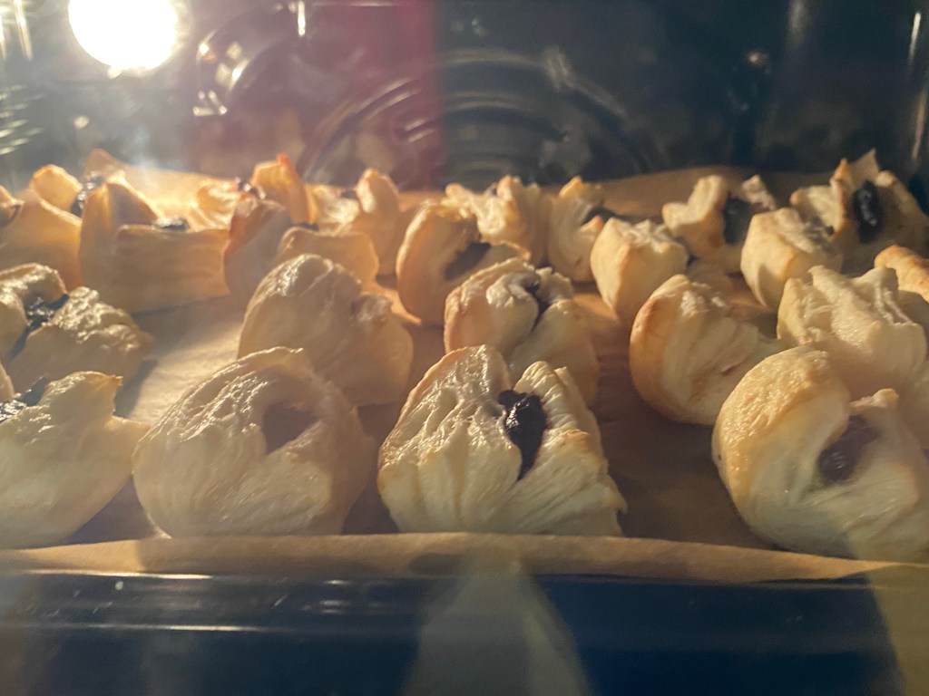Sütöpapírral bélelt tepsibe rakjuk, egymástól távolabb, mivel sütés közben szépen kinyílnak. Figyeljük öket, és kb. 8 perc után lejjebb vesszük a höfokot 180 C°-ra, még sütjük 10 percet.
