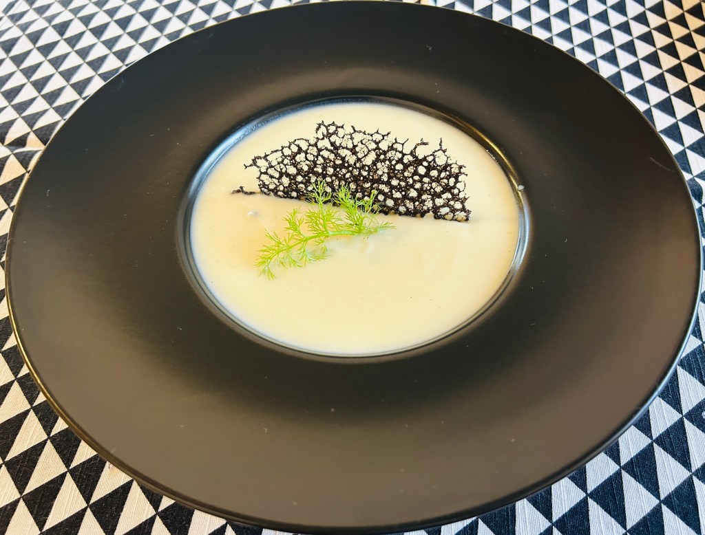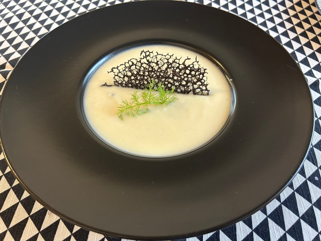 A karfiolt rózsáira szedjük, az édeskömény gumót összevágjuk és annyi vizzel hogy ellepje föni tesszük. A vízbe beletesszük a sót, és hosszába kettéhasított vaníliarúdat, fözzük tíz percig.