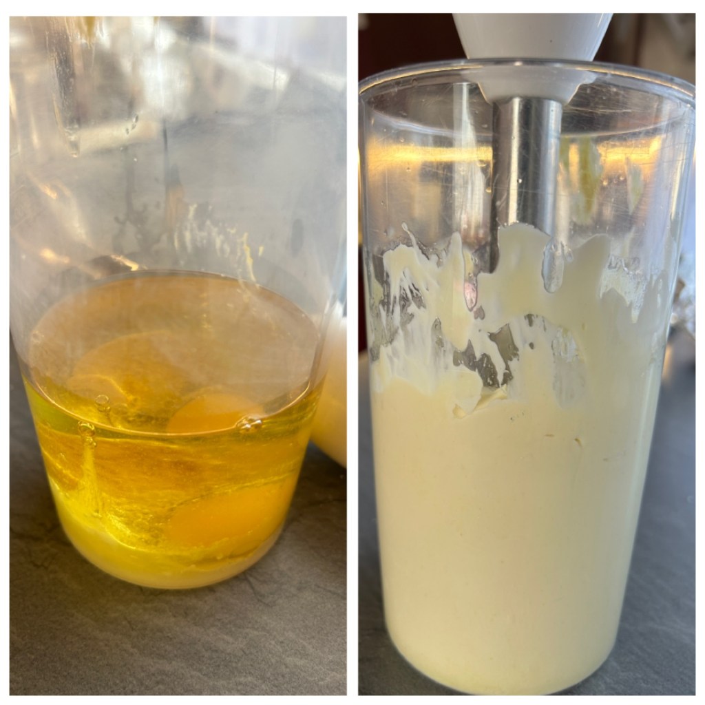 A majonézhez egy magas, szük edénybe tegyük bele a hozzávalókat, majd az aljára nyomjuk teljesen le a botmixert, fokozatosan jövünk felfele, meddig elérjük a sürü, kemény állagot. A majonéz ízesítése ízléstöl függ, változtasd kedved szerint. Ecet helyett próbáltam már citromlével is. Egy marék megmosott szárazra törült medvehagymát 2-3 evökanál majonézzel összemixerelünk, majd a többi majonézhez keverjük.