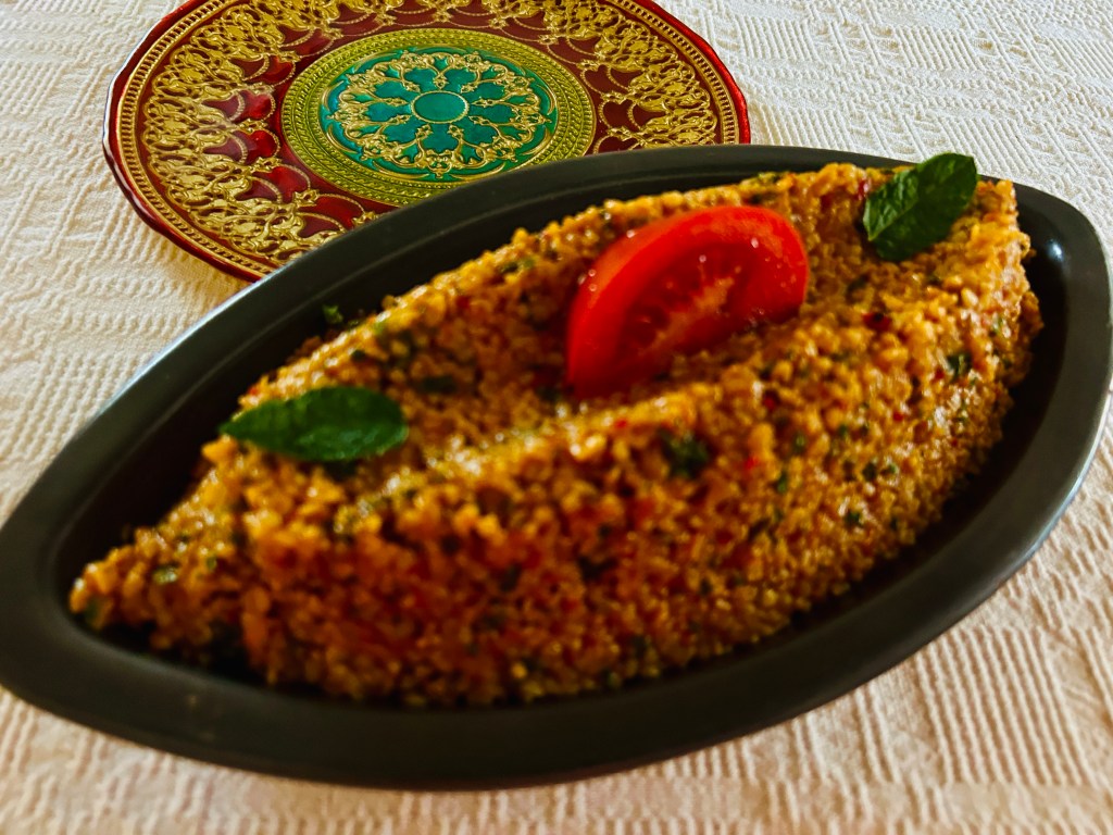 A libanoni tabbouleh rokona, csak ebben nincs annyi petrezselyem, és pikánsabb. Az eredeti receptben paradicsompaszta/paradicsompüré szerepel, paprika, chili.