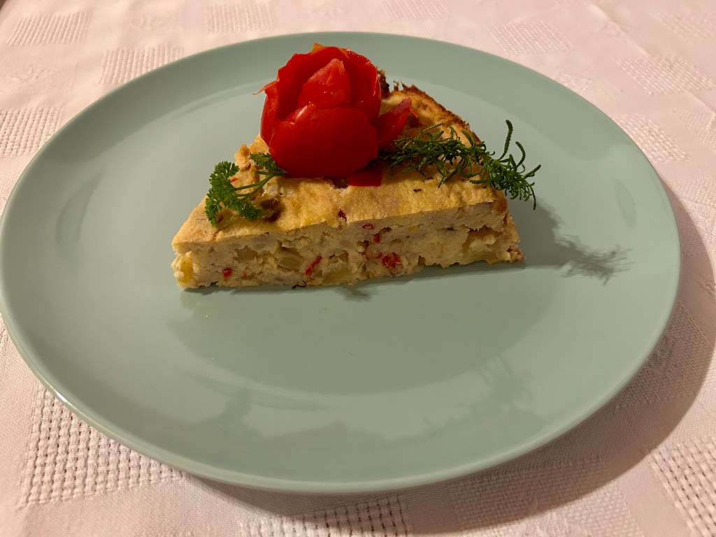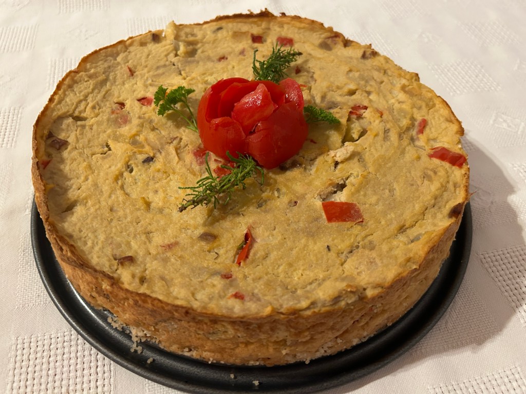 Sózzuk, borsozzuk ízlés szerit. A sütöt elömelegítjük 190 C°-ra, egy tortaformát (kb. 20 cm átméröjü) kivajazunk, és megszórjuk zsemlemorzsával. Beleöntjük a masszát, 45-50 perc alatt készre sütjük. Langyosan vagy hidegen salátával kíváljuk.