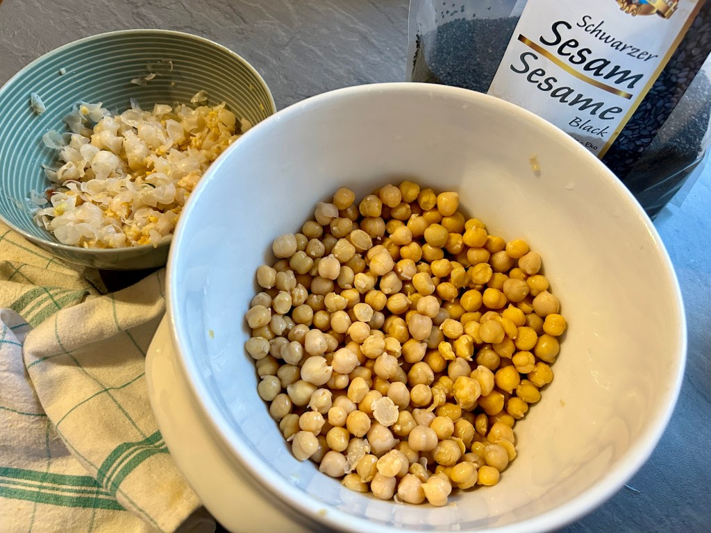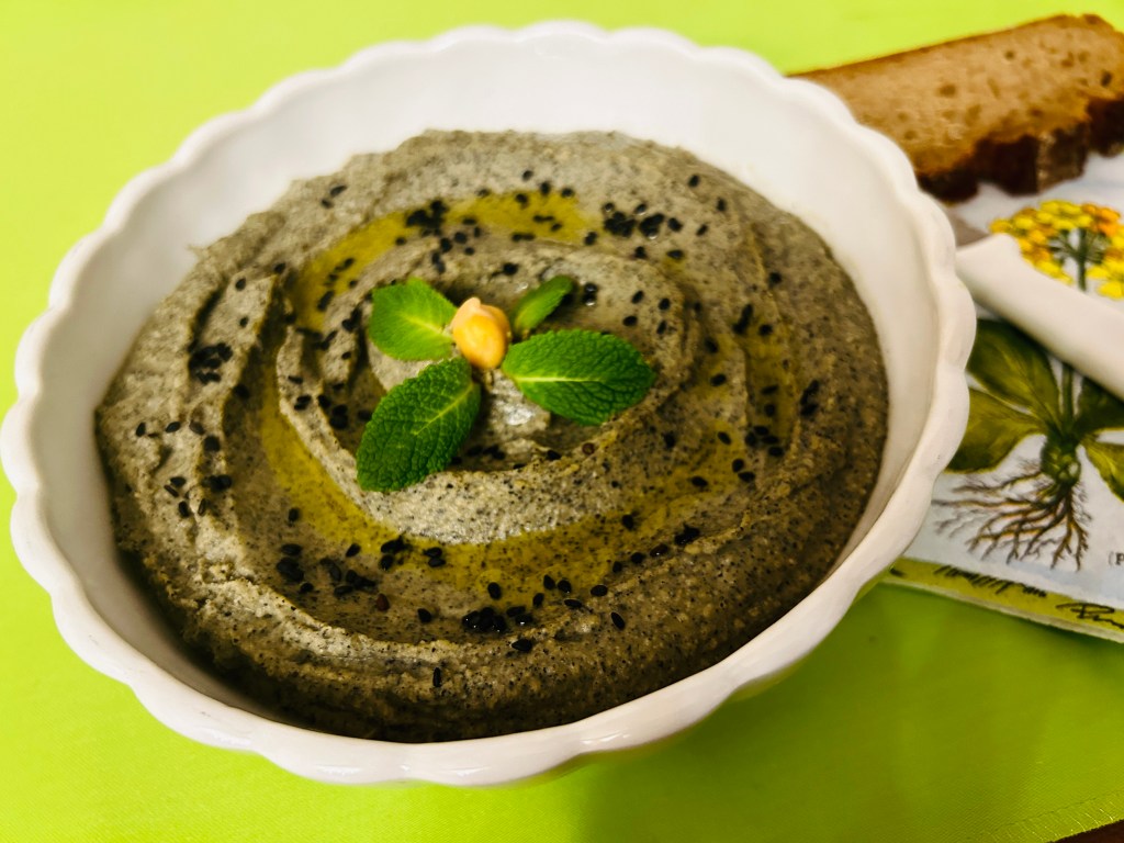 Számos változata létezik a hummusznak. A csicseriborsó mellett a másik fö összetevö a tahini (szezámpaszta). Egyik fözös csoportban láttam, fekete tahinivel készítve, és loptam az ötletet. Fekete tahinit ugyan nem találtam, de fekete szezámmag mindig van itthon, így gondoltam azt teszek bele. A feketeszezámot gyakran fogyasztjuk, mivel egy igen hasznos gyógynövény. Használata több ezer évre nyúlik vissza, és különféle kultúrákban gyakran alkalmazzák, az ayurvédikus gyógyászatban, a tradicionális kínai orvoslásban, az arab orvoslásban. Számos potenciális egészségügyi előnye van, köztük gyulladáscsökkentő, antioxidáns, immunrendszer-erősítő és emésztést segítő. Sokszor használják különböző egészségügyi problémákra olaj formájában is, például ízületi gyulladások, gyomorproblémák, légúti betegségek és bőrbetegségek kezelésére vagy enyhítésére.