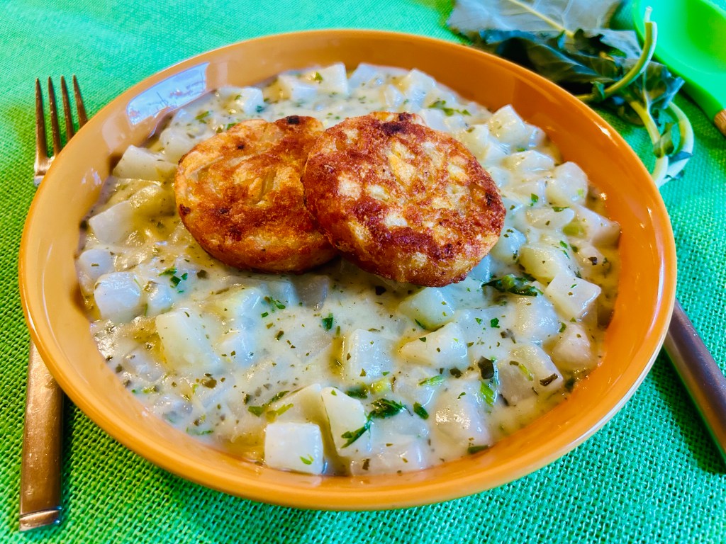 Ropogósra sült burgonyarösztivel tálaljuk, vagy akár húsos feltéttel.