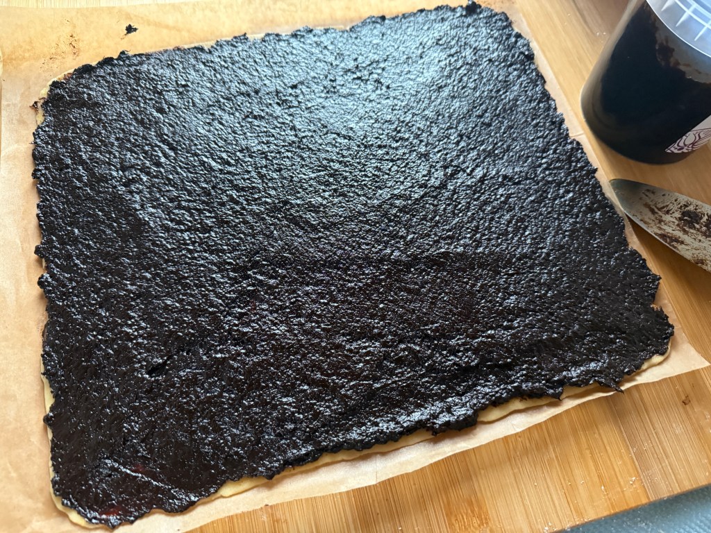 A liszthez hozzáadjuk a sót , elmorzsoljuk benne a vajat. Hozzáadjuk a tojást, a cukrot, sütöport, a felfuttatott élesztöt , reszelt citrom héjat, és jól összegyúrjuk. A tésztát négy egyenlö részre osztjuk. kettöt ebböl beteszünk a hütöbe ameddig a másik kettövel dolgozunk.Kinyújtjuk az egyik gombócot tepsi nagyságúra (32/36cm. ) megkenjük sürü szilvalekvárral. Befedjük a másik kinyújtott lappal. A tésztát én sütöpapír között nyújtottam ki, mivel elég vékonyra kell nyújtani, könnyebben boldogulunk így a nyújtással. Sütöpapírral bélelt tepsibe tesszük, a tetejét villával megszurkáljuk . 180 C°-on kb. 20 percig sütjük, meddig a teteje szép arany-barna lessz. Kivesszük a másik két lapot a hütöböl, kinyújtjuk, megkenjük, megsütjük, mint az elözö müveletnél.