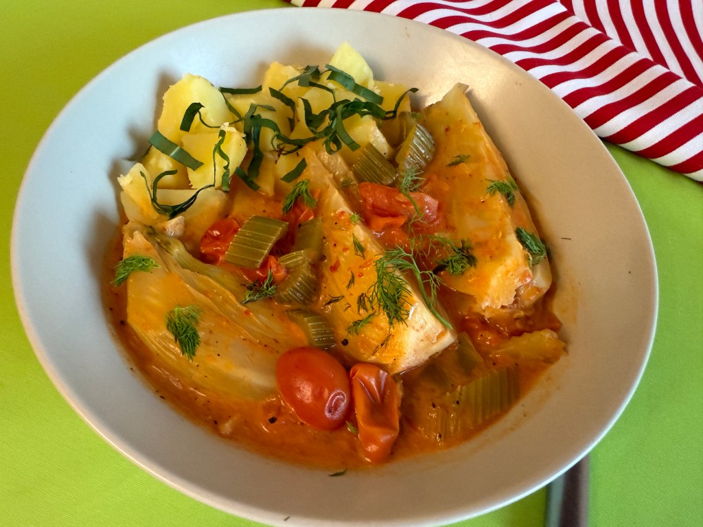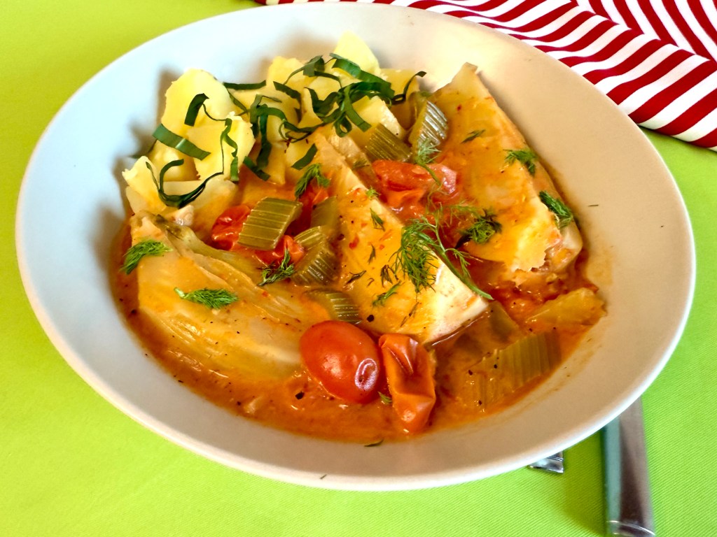 Ebben a receptben a koktélparadicsom frissessége és enyhe savassága tökéletesen ellensúlyozza az édességét, míg a zellerszár ropogós textúrát ad hozzá. Egy kevés tejszínnel krémesítettem az ételt, és főtt krumplival tálaltam. Isteni böjtös/diétás fogás. Nagyon kevés kalória van benne, viszont sok vitamint, és rostot tartalmaz.