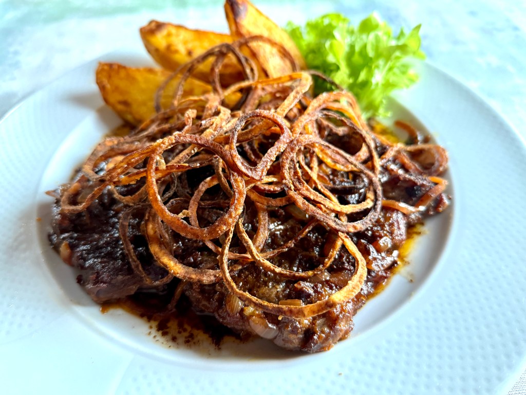 Lényege a tökéletesen megsütött, szaftos marhahús, amit bőségesen koronáz az aranybarnára pirított hagyma. Nem véletlenül vált a magyar vendéglők egyik kihagyhatatlan, örökzöld fogássává. Egyszerre idézi fel a múlt század békebeli vendéglőinek hangulatát és a családi vasárnapi ebédek meghitt ízeit.