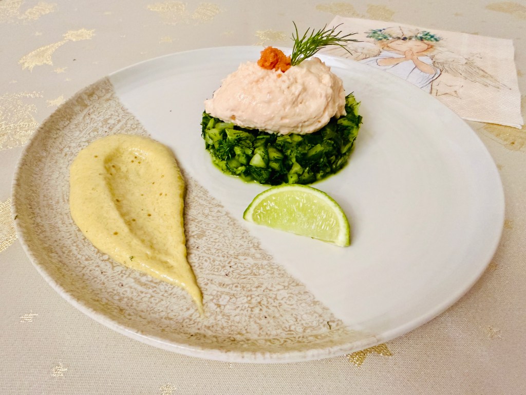 Az ünnepi asztalon mindig jólesik egy könnyed, mégis elegáns előétel, amely felkészíti az ízlelőbimbókat a következő fogásokra. Ez a lazac mousse a füstölt lazac karakterét ötvözi a krémes állaggal, miközben a lime-os uborkatartár friss savassága finoman ellensúlyozza a gazdag textúrát. Ez az előétel elözö nap is elkészíthetö, így megkönnyítve a dolgunkat, másnap csak tálalnunk kell.