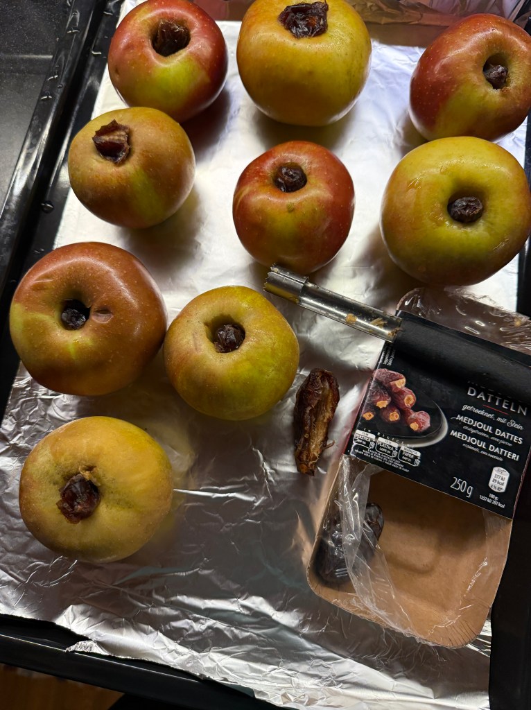 Egy tepsibe, egy alufóliára rakjuk az almákat, opcionális hogy mennyit. Elömelegített sütöben 200 C°-on, 15 -20 perc alatt megsütjük.