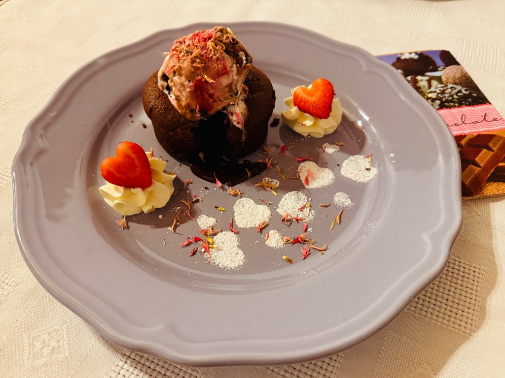 Vacsoránkat egy fagyis láva-sütivel zártuk, és koccintottunk egy pohár proseccoval -stílusosan, “joggingba”kiöltözve, kényelmesen, vonósnégyes nélkül.